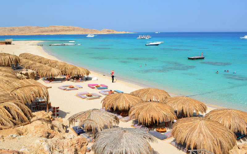 Following your transfer, start by sailing the turquoise waters on board a comfortable boat. Marvel at views of the white sand beaches and palm-thatched beach huts. Soak up the Red Sea sun, watching for playful dolphins as you go. Then, upon arrival at Mahmya, you are free to snorkel the impressive coral heads of the clear lagoon. Relax on the beach and swim in crystal clear waters.